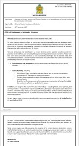 இலங்கைக்குச் செல்லும் மற்றும் இலங்கையில் இருந்து இயங்கும் விமான நிறுவனங்களின் விதிமுறைகளில் (flexible airline policies) சிறப்பு மாற்றங்களை அறிமுகப்படுத்தியுள்ளன.