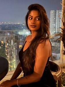 ரசிகர்கள் மனசைக்கவரும் வகையில் வினுஷா தேவி, கருப்பு நிற மோடர்ன் உடையில்.