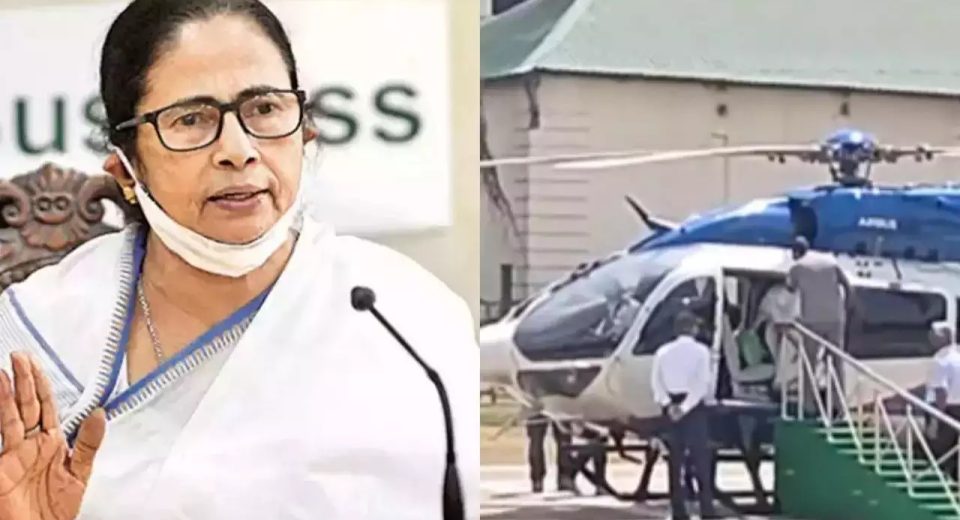 ஹெலிகாப்டரில் ஏறும் போது தவறி விழுந்த மம்தா பானர்ஜி