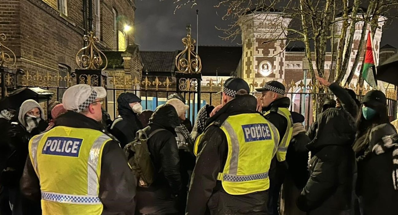 பலஸ்தீன நடவடிக்கையுடன் தொடர்புடைய ஒரு செயற்பாட்டாளருக்கு ஆதரவாக உண்ணாவிரதப் போராட்டம் நடத்திய 86 பேர் கொண்ட குழுவொன்று, லண்டனில் உள்ள வோர்ம்வுட் ஸ்க்ரப்ஸ் சிறைச்சாலை (Wormwood Scrubs Prison) வளாகத்தில் கைது செய்யப்பட்டுள்ளனர்.
