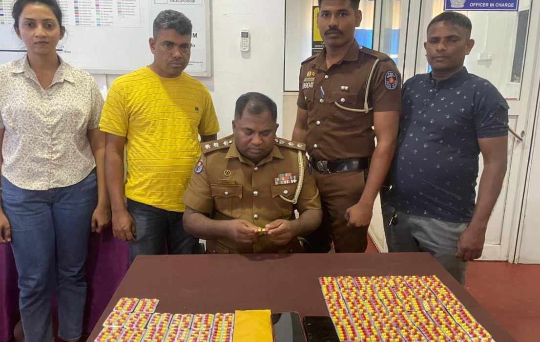 கைது செய்யப்பட்ட இருவரிடம் இருந்தும் 630 போதை மாத்திரைகளும் , 5 கிராம் 400 மில்லி கிராம் ஹெரோயினும் மீட்கப்பட்டுள்ளன.