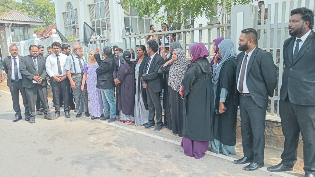 திருகோணமலை மற்றும் கந்தளாய் நீதிமன்றத்திற்கு முன்னால் ஒன்றுகூடிய சட்டத்தரணிகள், தமது கைகளில் கறுப்புப் பட்டிகளை அணிந்து, கண்டனப் பதாதைகளை ஏந்தியவாறு அமைதியான முறையில் போராட்டத்தை முன்னெடுத்தனர்.