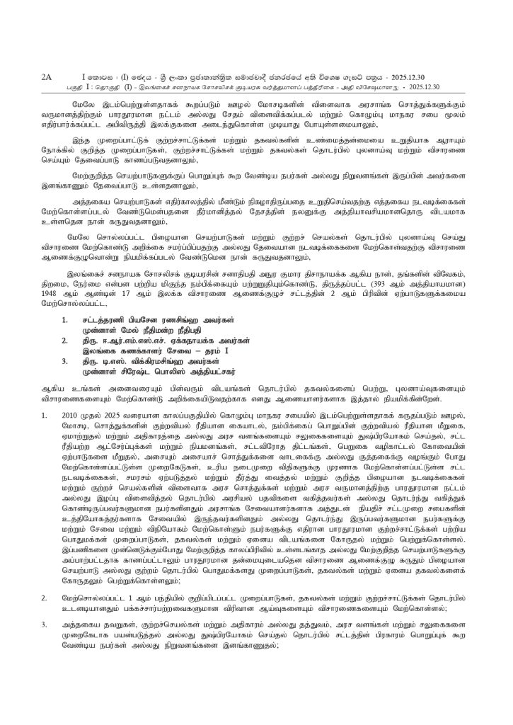 மேல் நீதிமன்றத்தின் முன்னாள் நீதிபதி பியசேன ரணசிஹ்க தலைமையில் அமைக்கப்பட்டுள்ள இக்குழுவில் மூவர் இடம்பெற்றுள்ளனர்.