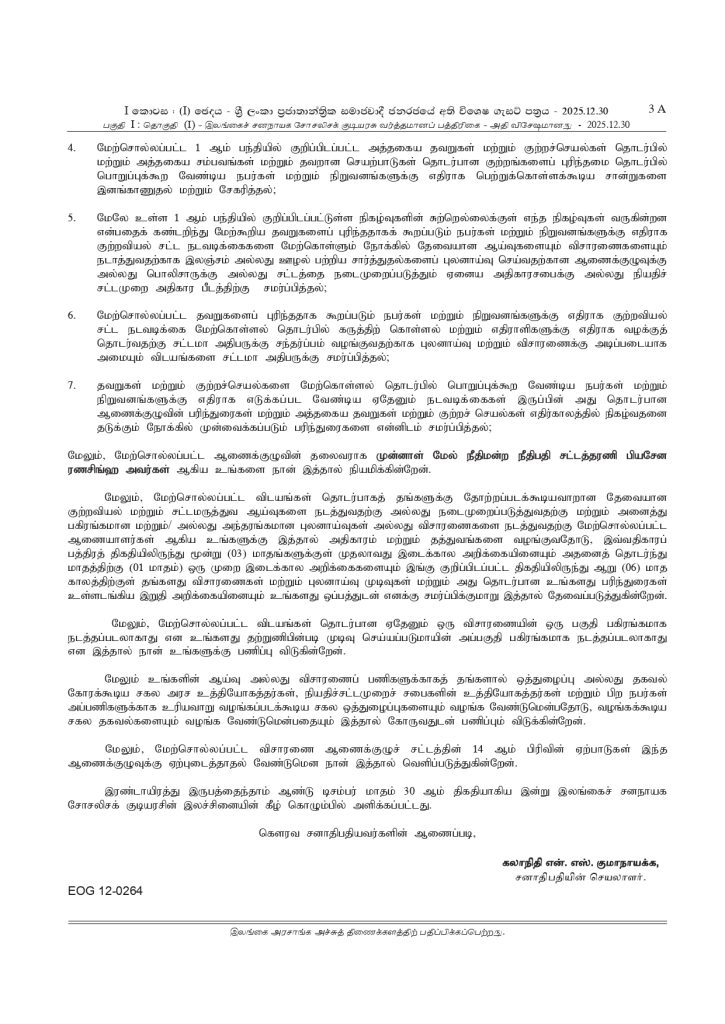 இது தொடர்பான விசேட வர்த்தமானி அறிவித்தல் வெளியிடப்பட்டுள்ளது.