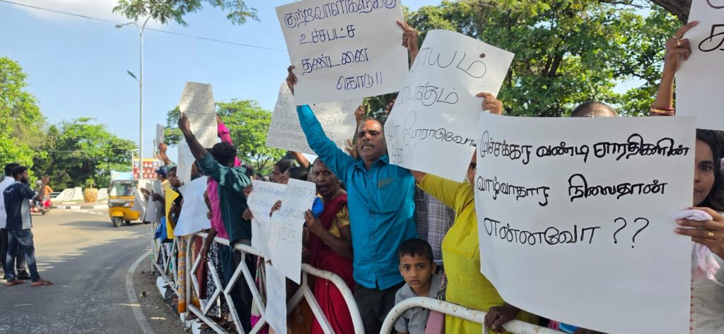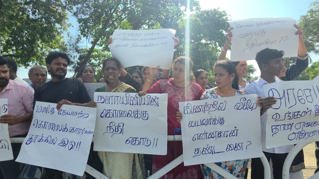 தடைகளைத் தாண்டி செயலகத்தின் முன் திரண்ட பொதுமக்கள், எதிர்காலத்தில் இவ்வாறான கொடூரங்கள் நிகழாத வகையில் குற்றவாளிகளுக்கு உச்சக்கட்டத் தண்டனை வழங்கப்பட வேண்டும் என முழக்கமிட்டனர்.