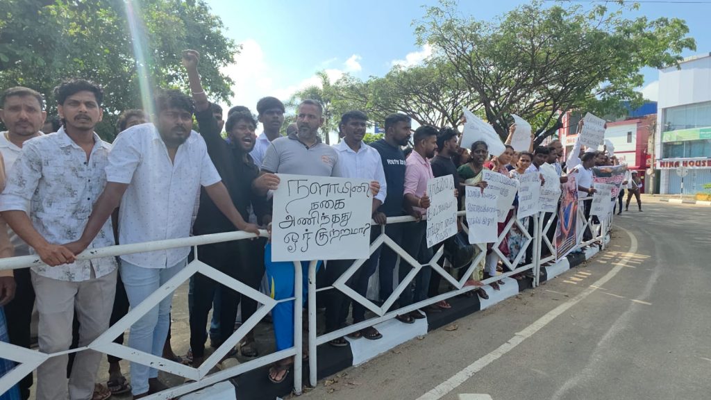 மட்டக்களப்பு மாவட்டத்தில் அண்மையில் இடம்பெற்ற கொள்ளை மற்றும் கொலைச் சம்பவங்களுடன் தொடர்புடைய சந்தேகநபர்களுக்குத் தகுந்த தண்டனை வழங்கப்பட வேண்டும் என வலியுறுத்தி, மட்டக்களப்பில் இன்று (27) பாரிய கவனவீர்ப்புப் போராட்டம் முன்னெடுக்கப்பட்டது.