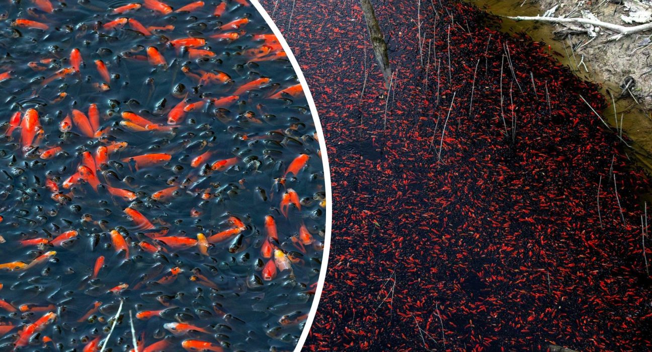அந்தப் பகுதியில் உள்ள ஆழமற்ற நீர்ப் பகுதியில் ஆயிரக்கணக்கான தங்கமீன்கள் ஒக்சிஜன் கிடைக்காமையால் உயிரிழப்பதாகத் தெரிய வந்துள்ளது.