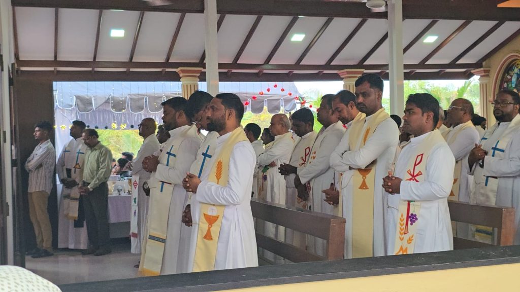 யாழ். மறை மாவட்ட குரு முதல்வர் அருட்தந்தை ஜோசப்தாஸ் ஜெயரட்ணம் தலைமையில், இலங்கை மற்றும் இந்திய அருட்தந்தையர்கள் இணைந்து, திருப்பலி ஒப்புக்கொடுத்தனர்