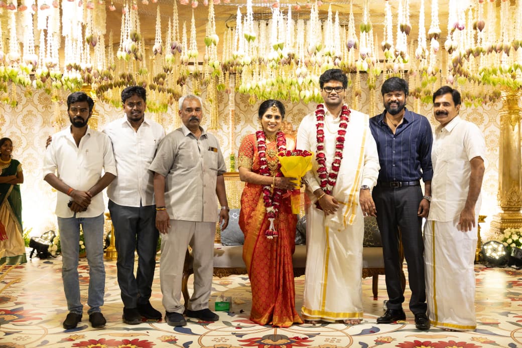 இந்த மகிழ்ச்சியான நிகழ்வில் நடிகர் விஜய் சேதுபதி, சீர்காழி ஜி. சிவசிதம்பரம், ஜிகே வாசன் தமிழ் மாநில காங்கிரஸ், நடிகை லிஸ்ஸி லக்ஷ்மி, நடிகர் ராதா ரவி, நடிகர் ரமேஷ் கண்ணா, நடிகை வெண்ணிற ஆடை நிர்மலா, நடிகர் மற்றும் தயாரிப்பாளர் சித்ரா லட்சுமணன், தயாரிப்பாளர் ரெட் ஜெயன்ட் மூவிஸ் ஷெண்பக மூர்த்தி, நடிகர் மது மோகன், நடிகர் சௌந்தரராஜா, இசையமைப்பாளர் கணேஷ் (சங்கர் கணேஷ்), நடிகர் சச்சு, நடிகர் மற்றும் இயக்குனர் தியாகராஜன், நடிகை நளினி, நடிகை சீமா சசி மற்றும் தமிழ் திரையுலகின் முக்கிய பிரமுகர்கள், நடிகர்கள், குடும்ப உறுப்பினர்கள் மற்றும் நலம் விரும்பிகள் கலந்துகொண்டு, தங்கள் புதிய பயணத்தைத் தொடங்கும் மணமக்களை வாழ்த்தினர்.