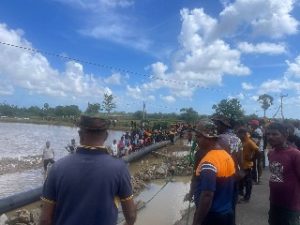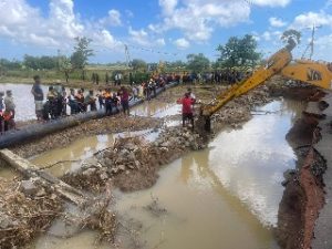 இதனை இழுத்து கொண்டு வந்து இணைக்கும் பணியில் இராணுவத்தினர் பிரதேச மக்கள் நீர் வளங்கள் அதிகார சபையினர் குறித்த திருத்தும் பணியில் ஈடுபட்டு வருகின்றனர்.