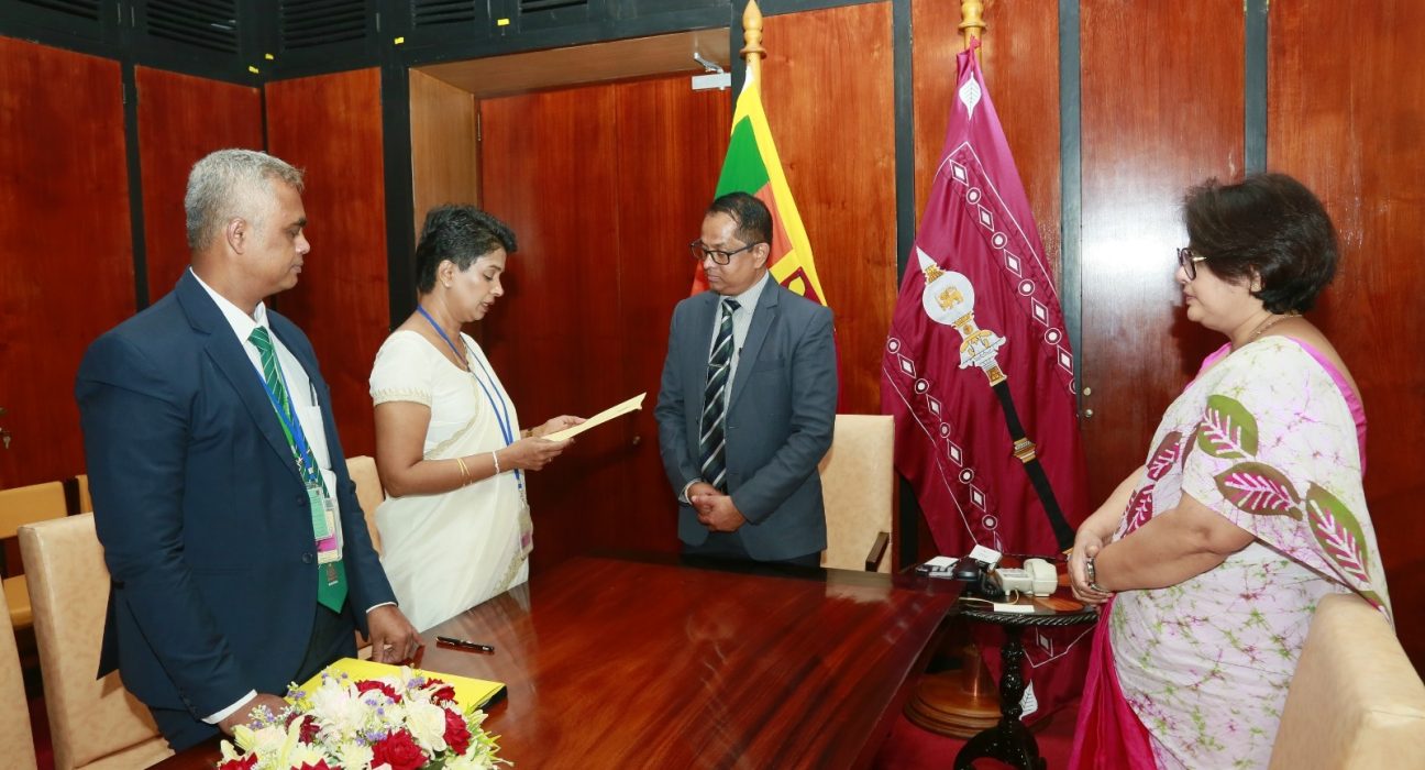 புதிய கணக்காய்வாளர் நாயகம் சமுதிகா ஜயரத்ன Ms. Samudika Jayarathna , சபாநாயகர் ஜகத் விக்கிரமரத்ன Jagath Wickramaratne முன்னிலையில் இகரசியம் பேணுவதற்கான சத்தியம் செய்துகொண்டார்.
