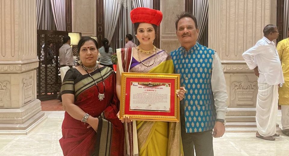 விருதுடன் நடிகை ஸ்ருஷ்டி டாங்கே!