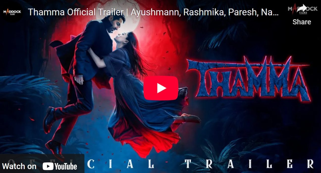 நடிகை ரஷ்மிகா மந்தனாவின் புதிய படமான தம்மா படத்தின் டிரைலர் வெளியாகி உள்ளது.