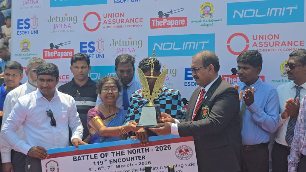 119 ஆவது ‘வடக்கின் மாபெரும் போர்’ கிரிக்கெட் சமரில், யாழ்ப்பாணம் சென். ஜோன்ஸ் கல்லூரியை 3 விக்கெட்டுகளால் வீழ்த்தி யாழ்ப்பாணம் மத்திய கல்லூரி வரலாற்றுச் சிறப்புமிக்க வெற்றியைப் பதிவு செய்துள்ளது.