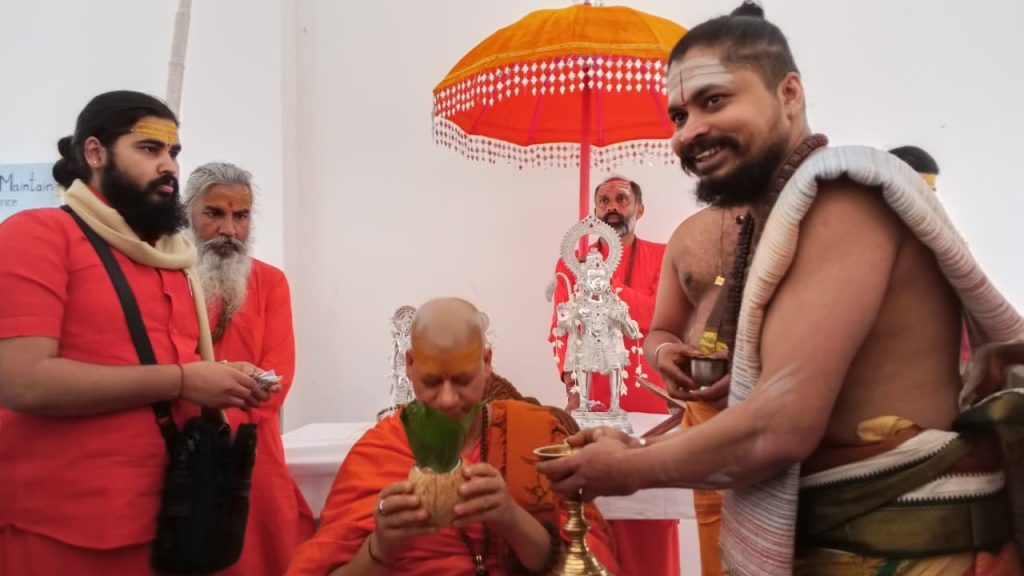 பொலன்னறுவையில் இருந்து உலங்கு வானூர்தி மூலமாக நுவரெலியா மாநகர சபை பொது விளையாட்டு மைதானத்திற்கு வந்திரங்கிய சுவாமிகள் உட்பட்ட குழுவினரை நுவரெலியா மாநகர சபை முதல்வர் உபாலி வணிகசேகர வரவேற்றார்.